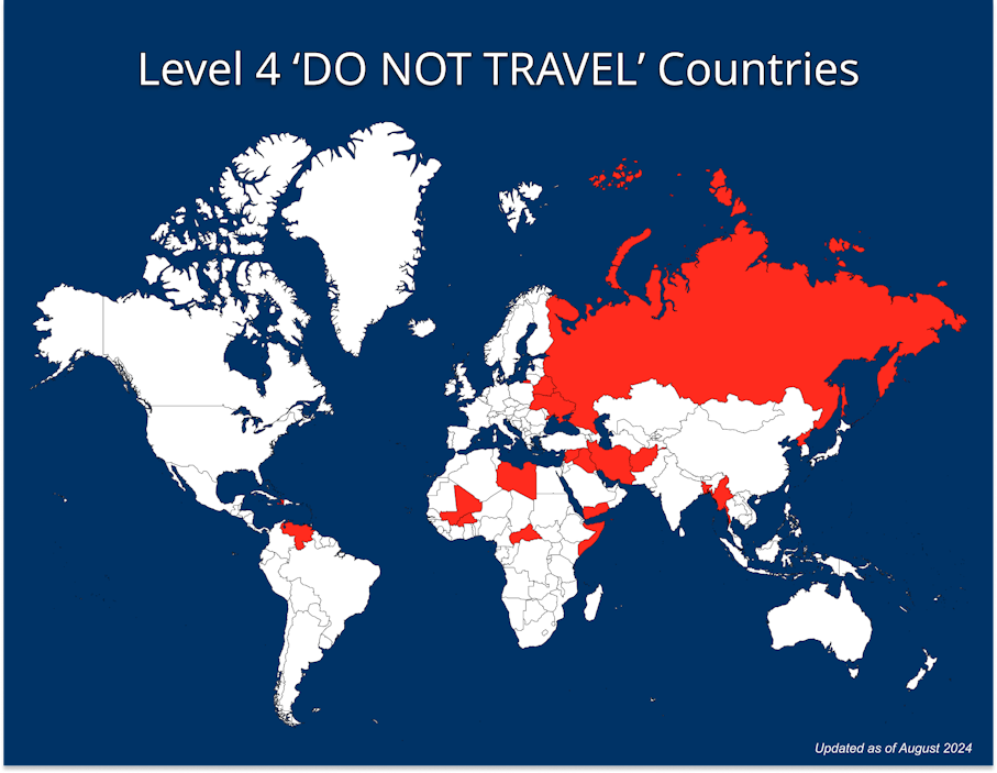 Us Travel Advisory Map 2025 – Read more: US Government’s Level 4 travel advisory: High-risk destinations to the remaining regular cap slots for the fiscal year 2025. With the second round of selections underway . The U.S. State Department has added at least 116 countries this week to its “Level Four: Do Not Travel” advisory list On Tuesday, the United States extended by a further 30 days .